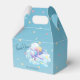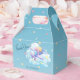 A favour box featuring a cute little aeroplane flying through clouds on a blue background with colourful stars, personalised with your thank you message to guests for attending the baby shower.