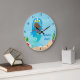 Cute beach house kids bedroom wall clock for a little African American girl who loves swimming in the summer with mermaids. Features a pretty blue haired black mermaid child and beautiful coral under the sea.