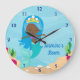 Cute African American Mermaid Beach Girl Kids Room Large Clock