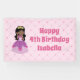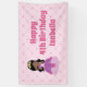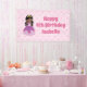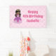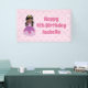 These adorable pink princess happy birthday banner features a drawing of a pretty black girl wearing a beautiful pink ball gown. Personalise this cute children's birthday decor with your African American child's name between the fun heart pattern.