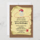 Start your pirate party off right with our cute Ahoy mates Pirate Birthday Party invitation featuring a pirate skull with swords set on a parchment paper set on a wood plank background. Perfect for a boys 1st birthday or any kids birthday party. Fully customisable by you with your information. ©Corazón Dulce