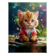 little cute AI cat sits by the water at the lake / small sweet KI cat seated by the water