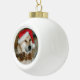 Cute akita in red santa hat with christmas cones ceramic ball christmas ornament