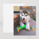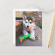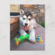 Save postage and envelope/paper when you send this cute close up photograph of a Malamute puppy with a colourful rope and chew toy on the cover of this postcard. ©Patricia AZ Phillips. Click Customise it! to add text on the front or back in a font style, size and colour you prefer.