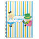 Cute custom Alice in Wonderland notebook for a child who loves books. Little girl Alice in her blue dress and the Mad Hatter sit on a pretty blue border on a whimsical personalized journal for children.