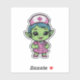 Bring a touch of intergalactic care to your collection. This sticker features a cute little alien nurse in a uniform, complete with a stethoscope around her neck. Perfect for laptops, water bottles, or notebooks, it’s a fun way to show your love for healthcare heroes and all things extraterrestrial.