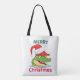 Cute alligator crocodile Christmas Safari Santa Tote Bag