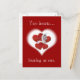 Our Alpaca Baby Valentines Day Postcards have a cute alpaca baby with red hearts on the front. Alpacas are different than other farm animals because they are always smiling and they hum too so they make a great Valentine for any animal lover. The Valentine postcards easily customise and personalise by changing the text to say anything you want.