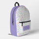 NewParkLane - Personalised Alphabet Backpack for kids or elementary school teachers, with a cute colourful pattern of letters, and a purple side and top. Add your kids name and school, or other text, for a personalised design. The panel colours can easily be changed.