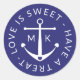 Cute Anchor Love Is Sweet Navy Blue Wedding Favor Classic Round Sticker