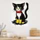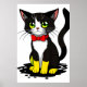 A cute and adorable black and white cat with yellow feet with red ribbon. This is a AI generated art.