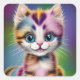 Cute and Adorable Smiling Striped Kitten Square Sticker
