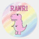 Cute And Angry Pink Cartoon T-Rex Dinosaur Classic Round Sticker