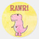 Cute And Angry Pink Cartoon T-Rex Old Paper Classic Round Sticker