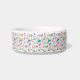 This is a heavy, durable bowl decorated with Tibbies of many colors, the perfect size for hungry/thirsty Tibs. The design is interesting and printing clear.
