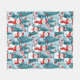 Cute cosy snowmen in warm red scarves and warm knit hats and a pretty green, red and blue pine tree background fleece blanket.
