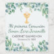 Celebra la ocasión religiosa de la Primera Comunión con esta elegante etiqueta de botella de vino que tiene hermosas hojas verdes y un diseño lindo de cáliz. Personalizable con cualquier variedad de uva, nombre y fecha.