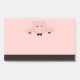 Sticky notes celebrating the Chinese New Year. A big pink pig face wearing a formal bow tie. Lifted up by his black cloven hooves and peering over a table. Cute and whimsical drawing. Set on a pink background with faded hearts. Ready to celebrate the year of the pig 2019.