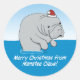 Cute and funny Manatee Claus Classic Round Sticker