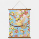 Cute and Happy Birds among Spring Flowers Hanging Tapestry