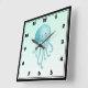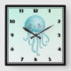 Cute and Happy Blue-Green Jellyfish Square Wall Clock