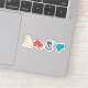 A vinyl decal with 4 cute cats. Each cat has a unique personality. One is a cool cat with sunglasses and a tie, another is a sleepy cat, one is a staring cat, and one is a playful cat scrunched up in a box looking ready to pounce.