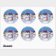 Cute and whimsical snowmen are chilling together as they keep each other nice and cold on a winter day. All the snowmen are wearing colourful and creative hats and scarves. Based on an original art piece by © One Artsy Momma.