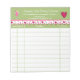 Colourful quilting business sales receipt note pad done in white, with a green header, at the top, with a heart decorated scalloped border. Graphics of a cute angel and a big pink heart decorate the note pad. Personalise the text to read anything you want.
