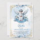 Cute angel blue flowers gold frame boy Baptism Invitation