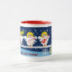 This mug has a cute design with Christmas Angels, Christmas trees and decorative Snowflakes in a snowy world. The text "Merry Christmas" is a template object and can be changed easily into any text.