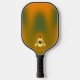 Original yellow baby chicken cartoon against a green and orange gradient style background on back. The text style/font, colour and size can be changed to suit. The front of the pickleball paddle has the gradient style background with a smaller copy of the chicken towards the handle, leaving plenty of room for any further personalisation you might want to make.