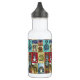 A water bottle with a unique and colourful collection of folk art style animals in a collage design. A variety of animals are found in this creative artistic design, which include a cobra, lion, dog, lizard, ostrich, zebra, rabbit, gecko, donkey and owl. This design has a unique style with a quaint and weird eccentric flair. I like it!
