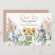 Cute gender unknown baby shower animals in masks covid virtual baby shower. White flowers botanical foliage and elephant, lion and zebra in face masks. Script text, part of a collection available in different colour ways.