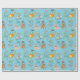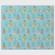 This cute wrapping paper features a pattern of cute animal marionette puppets against a light blue background. There's a cat marionette, a dog marionette, a goat marionette, a bird marionette, a rabbit marionette and an elephant marionette.