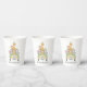 Cute gender-neutral baby shower paper cups featuring a watercolor illustration of baby animals (lion, zebra, elephant, monkey and giraffe) piled into a safari vehicle. Personalise with the mother-to-be's name, baby's name and the shower date.
