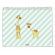 A bright and colourful calendar, featuring cute cartoon animals, including pets and wildlife. The fun illustrations have patterned backgrounds.