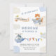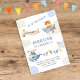 Up, up and away! Invite your little guests to a high-flying celebration with this cute aeroplane-themed birthday invitation. Featuring a fox flying a plane, a wolf piloting a helicopter, cheerful birds, and soft watercolor clouds, this design blends woodland charm with an aviation adventure. Personalise the text to suit your party details.
