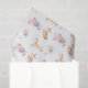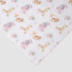 Sweet baby themed tissue paper done in white with cute cartoon giraffes, foxes, swans and elephants and colourful polka dots, on the background.