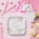 Personalize these adorable birthday party paper plates with your own wording easily and quickly, simply press the Edit Using Design Tool button to further re-arrange and format the style and placement of the text. Featuring adorable hand-drawn watercolor party animals in soft pastel hues, a pink ribbon bow and a lovely pink gingham background. All text is editable. Perfect for 1st birthday and other ages such as 2nd, 3rd, 4th and 5th. For a seamless and coordinated look, explore our range of matching items available in-store. (c) The Happy Cat Studio