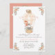 Adorable animals in a sweet hot air balloon announce the coming of your baby girl and your baby shower. A sloth sleeps on top of the balloon which is filled with a Zebra, Giraffe, Koala and Monkey surrounded by muted flowers and foliage. Graphically designed by internationally licensed Artist and designer, Audrey Jeanne Roberts, copyright.