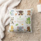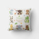 The front and back of this new baby announcement throw pillow for the nursery has cute animals. Personalise the front with name and birth information. Perfect for a baby boy or girl.