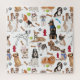 Adorable dog pattern with pows print, bones, balls, rope, and fire hydrant. You can see that cute little dogs has scarfs, bandanas, hays, bow ties and glasses