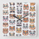 Cute Animals Sticker Sheet Adorable Cartoon Charac Square Wall Clock