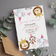 Cute Animals Birthday Invitation Template is perfect for girl's birthday party. Fun girl's safari animals theme 3rd birthday party invitation featuring illustration of safari animals of lion, elephant, monkey and bunny with pink party hats. Kids birthdays are special, and this invite can help it make a memorable birthday party.