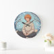 Cute Anime Boy Drinking Coffee in Winter Large Clock