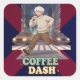 Cute Anime Boy Running in the City with Coffee Square Sticker