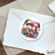 Anime kids in Santa hats holding toys themed Christmas stickers with a watercolor look.