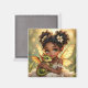 An adorable African-American anime fairy holding her chibi baby dragon magnet.