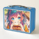 Cute Anime Girl eating a Peanut Butter and Jelly Metal Lunch Box