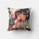 A cute anime girl with black hair and a pink headband with flowers eating fresh picked strawberries on a summer day. Cute for any girl who loves anime!